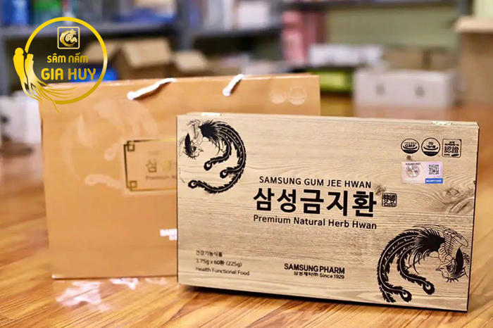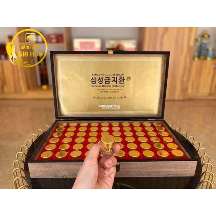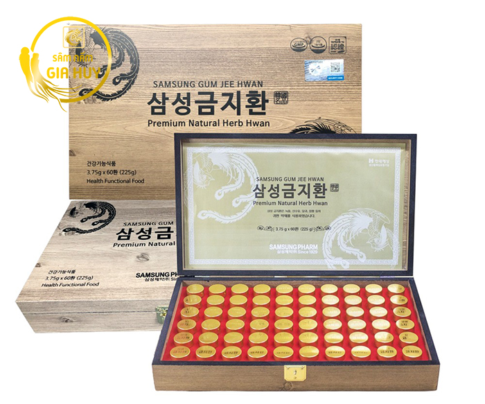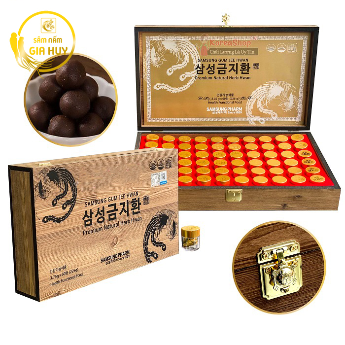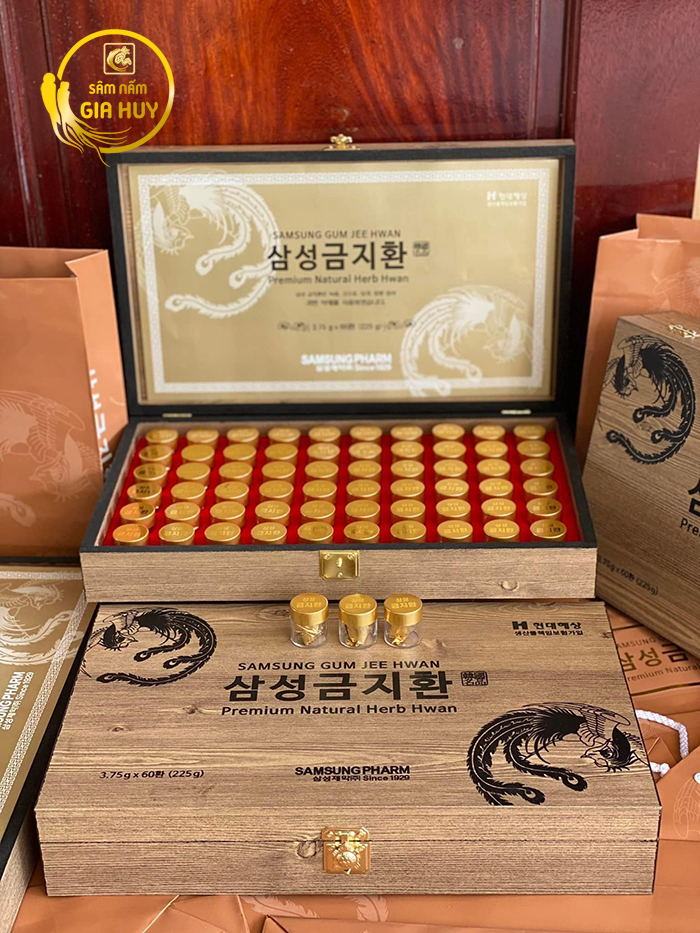 An cung hộp gỗ 60 viên được sản xuất bởi tập đoàn dược phẩm Samsung – Hàn Quốc, thương hiệu uy tín hàng đầu trong lĩnh vực thực phẩm bảo vệ sức khỏe.