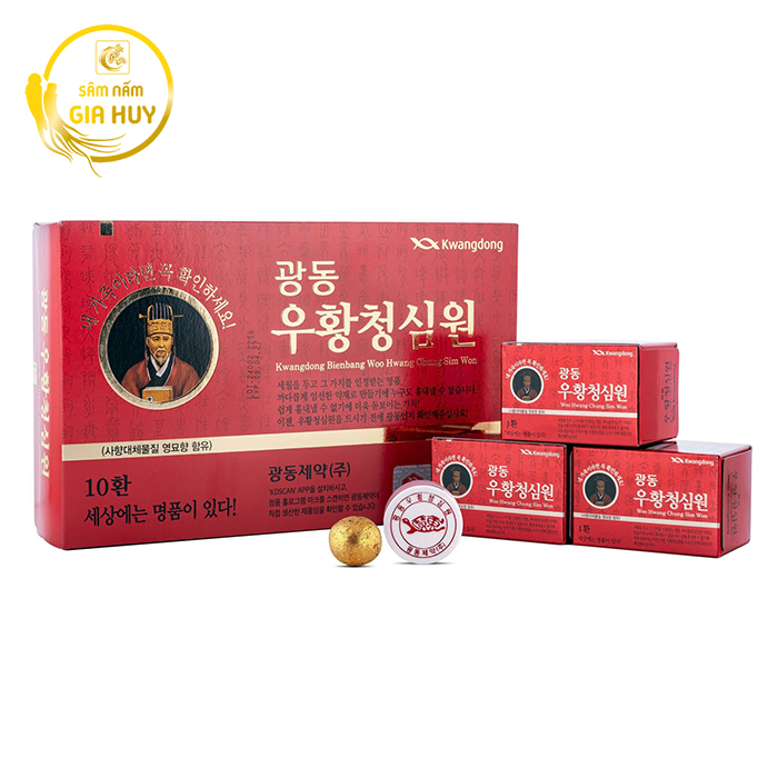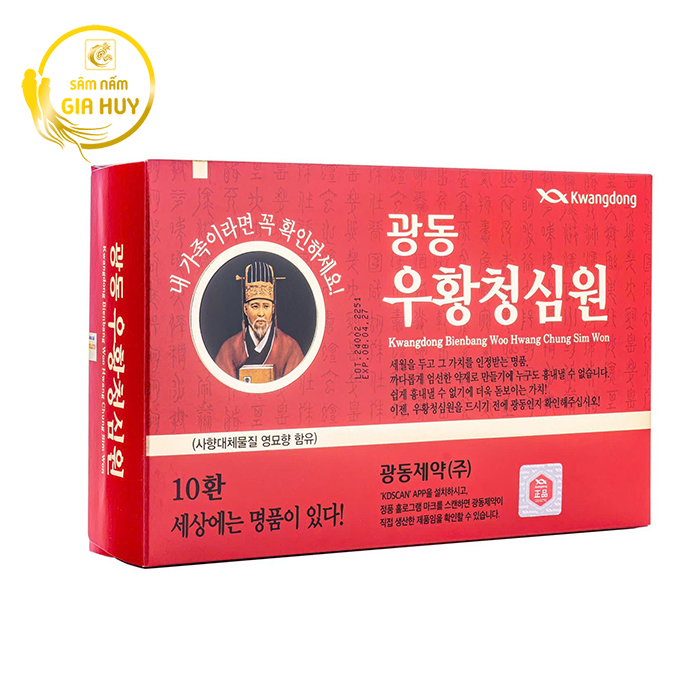 An Cung Ngưu Hoàng Hoàn Vũ Hoàng Thanh Tâm Kwangdong là sản phẩm nổi tiếng đến từ Hàn Quốc, được ví như “bảo vật” giúp hỗ trợ sức khỏe tim mạch, ổn định huyết áp và phòng ngừa đột quỵ. Sản phẩm hiện đã được Sâm Nấm Gia Huy nhập khẩu và phân phối chính hãng tại Việt Nam, mang đến lựa chọn an toàn và tin cậy cho người tiêu dùng.
