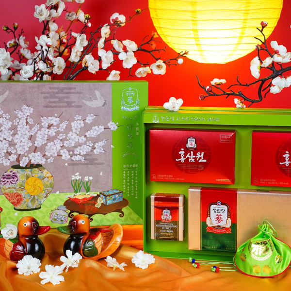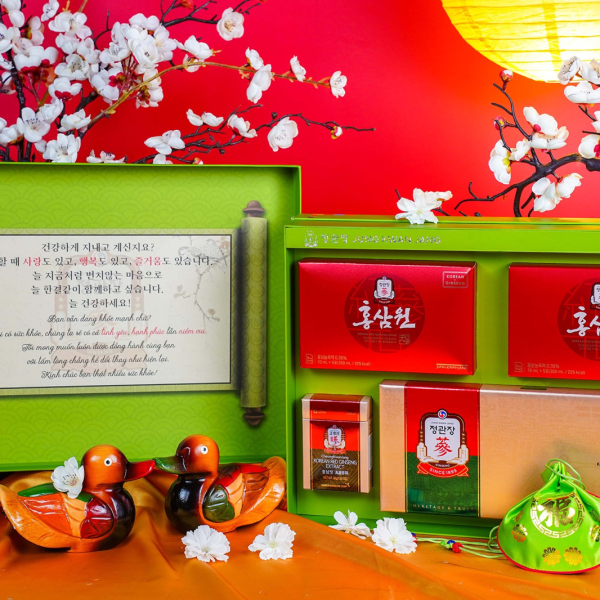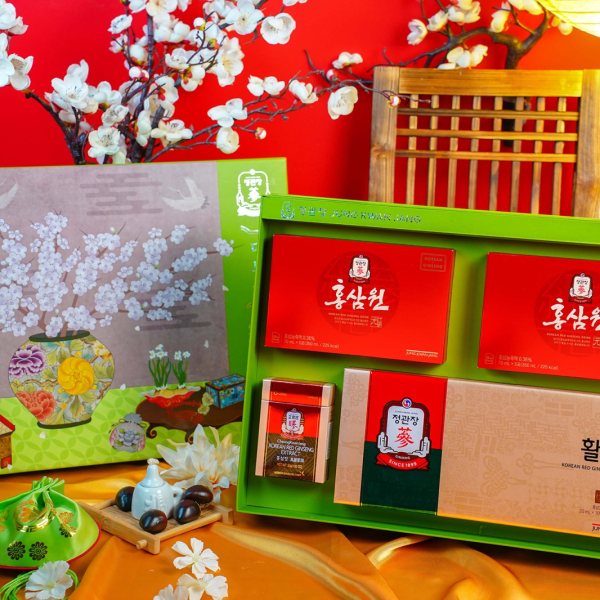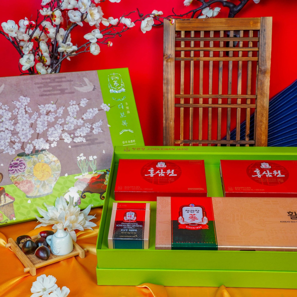 Bộ quà Vạn Sự Hanh Thông là sự kết hợp hoàn hảo giữa nghệ thuật tặng quà và khoa học chăm sóc sức khỏe. Bên trong là những sản phẩm được chiết xuất từ hồng sâm 6 năm tuổi KGC Jung Kwan Jang – dòng sản phẩm cao cấp được ưa chuộng tại Hàn Quốc và toàn cầu.