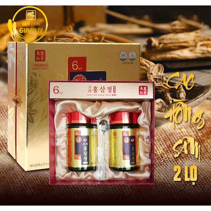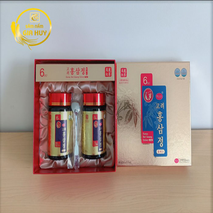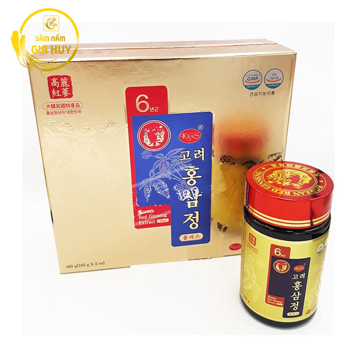 - Sản phẩm Cao Hồng Sâm KGS Hàn Quốc hộp 240g x 2 lọ được cô đặc từ 100% hồng sâm Hàn Quốc 6 năm tuổi, với hàm lượng Ginsenoside cao (Rgl + Rbl + Rg3 đạt 9mg/g).