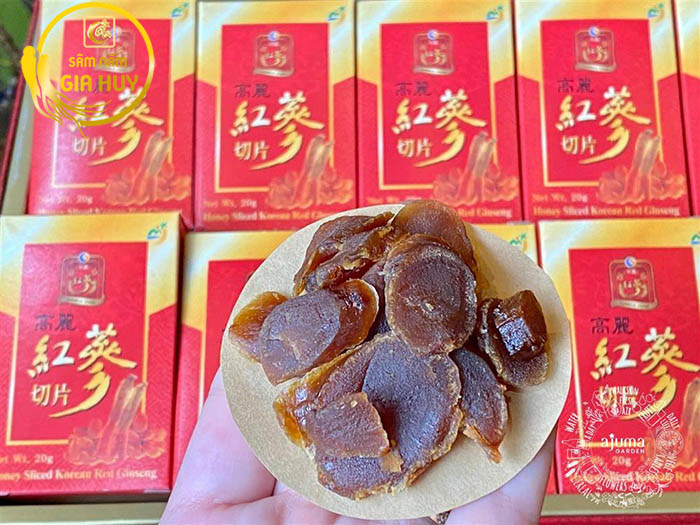 Ăn trực tiếp: Mỗi ngày dùng 1–2 lần, mỗi lần 2–3 lát hồng sâm. Ngậm đến khi mềm rồi nhai kỹ, nuốt phần bã.