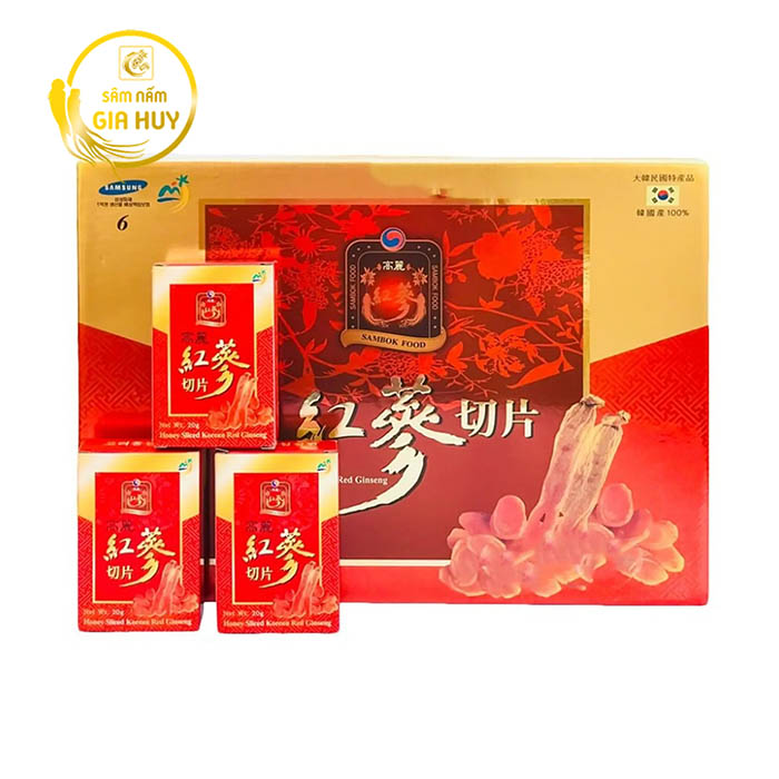Hồng Sâm Lát Tẩm Mật Ong Sambok Hàn Quốc là sản phẩm chăm sóc sức khỏe được ưa chuộng tại Hàn Quốc, mang đến hương vị thơm ngon, dễ dùng và giàu giá trị dinh dưỡng. Sự hòa quyện tinh tế giữa hồng sâm 6 năm tuổi cùng mật ong thiên nhiên giúp bồi bổ cơ thể, phục hồi năng lượng, phù hợp cho mọi lứa tuổi – đặc biệt là những người bận rộn muốn chăm sóc sức khỏe mỗi ngày một cách đơn giản và hiệu quả.