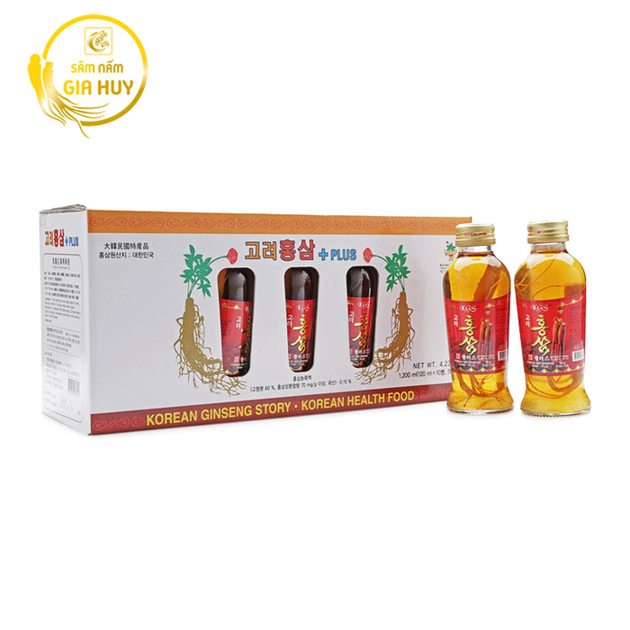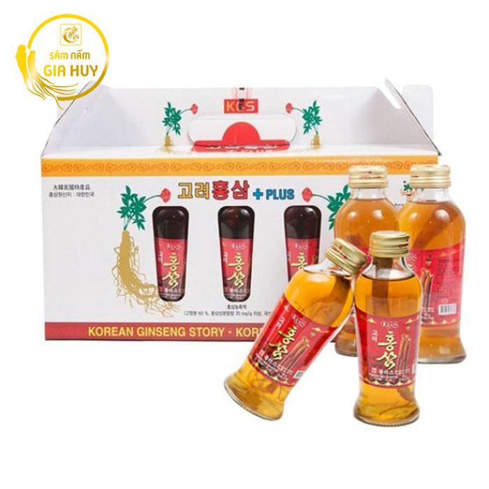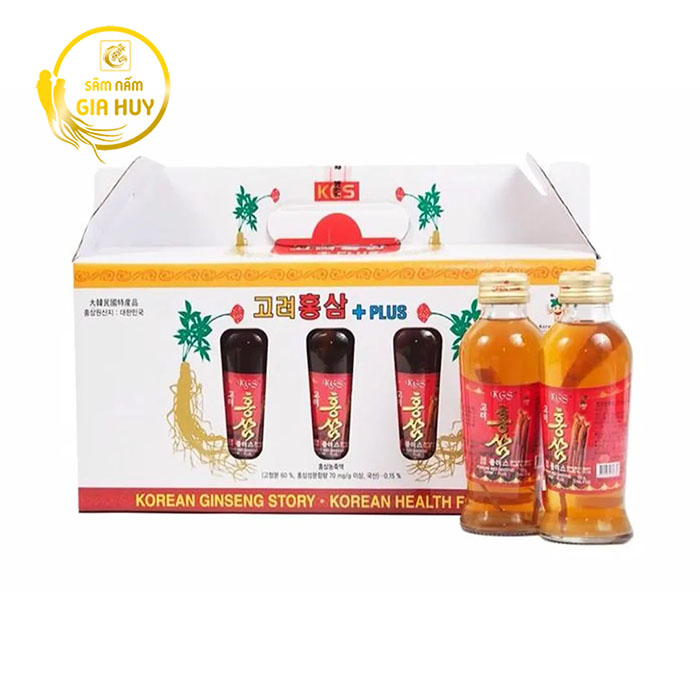 Nước Hồng Sâm KGS Có Củ Hàn Quốc hộp 10 Chai x 120ml là sản phẩm cao cấp thuộc dòng KGS Plus, được chiết xuất từ nhân sâm 6 năm tuổi kết hợp thảo dược quý như đại táo, đương quy cùng mật ong tự nhiên. Điểm đặc biệt là trong mỗi chai đều có nguyên một củ sâm thật, giúp người dùng cảm nhận rõ hương vị đậm đà và giá trị dinh dưỡng nguyên bản của nhân sâm Hàn Quốc.