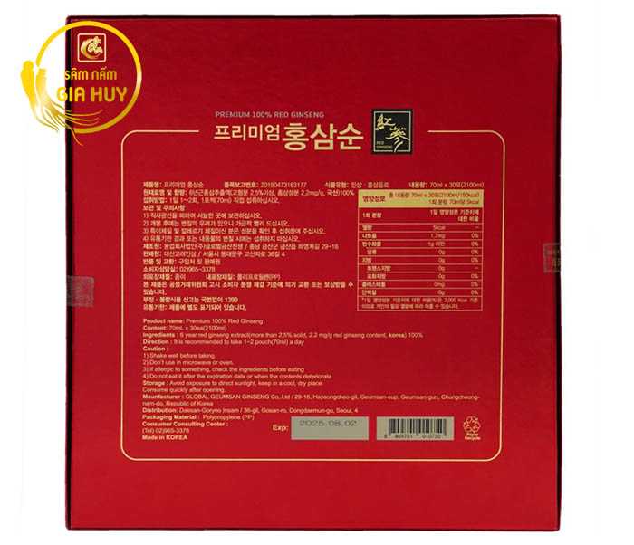 Hiện nay, nước hồng sâm không đường Daesan Hàn Quốc được phân phối chính hãng bởi Sâm Nấm Gia Huy – đơn vị nhập khẩu uy tín trực tiếp từ Hàn Quốc.