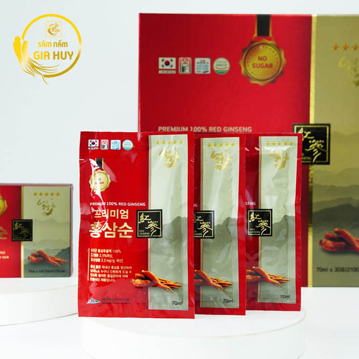 Với mỗi gói 70ml, người dùng có thể cảm nhận rõ hương vị nguyên bản của hồng sâm, vừa đậm đà vừa dễ uống – khác biệt hoàn toàn với các loại nước sâm thông thường trên thị trường.