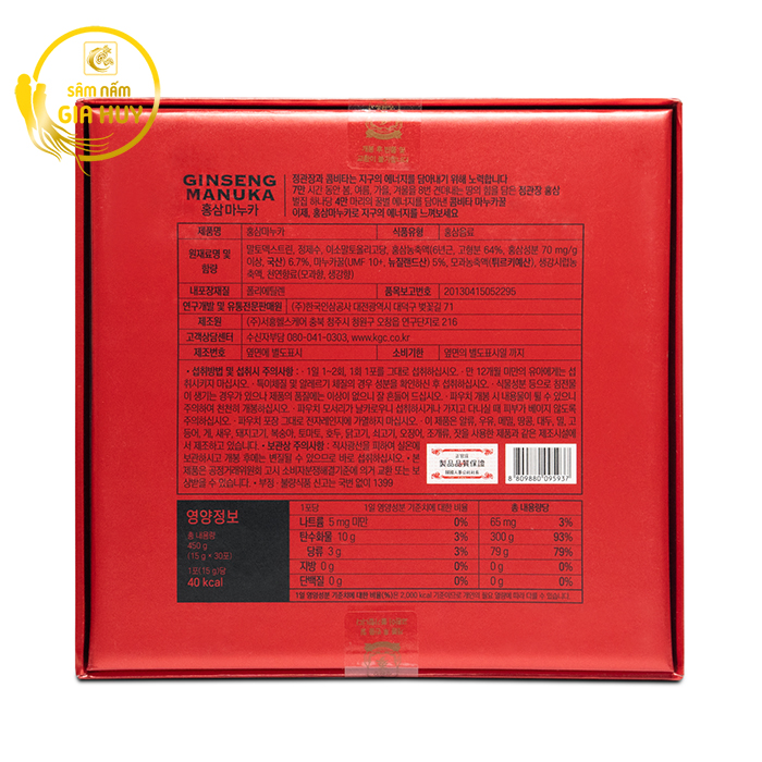 Sâm Nấm Gia Huy là đơn vị phân phối chính hãng các sản phẩm hồng sâm, linh chi, và tinh chất cao cấp từ Hàn Quốc, trong đó có tinh Chất Hồng Sâm Mật Ong Manuka KGC Jung Kwan Jang.