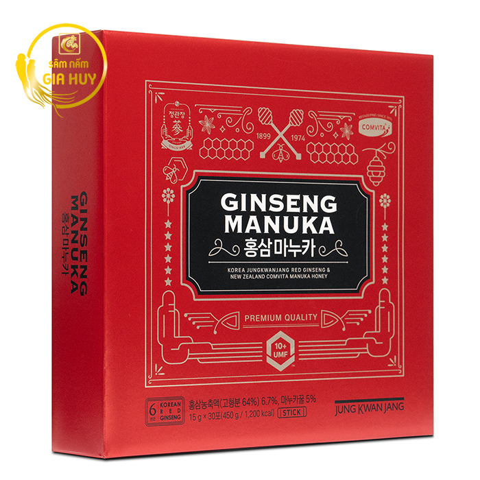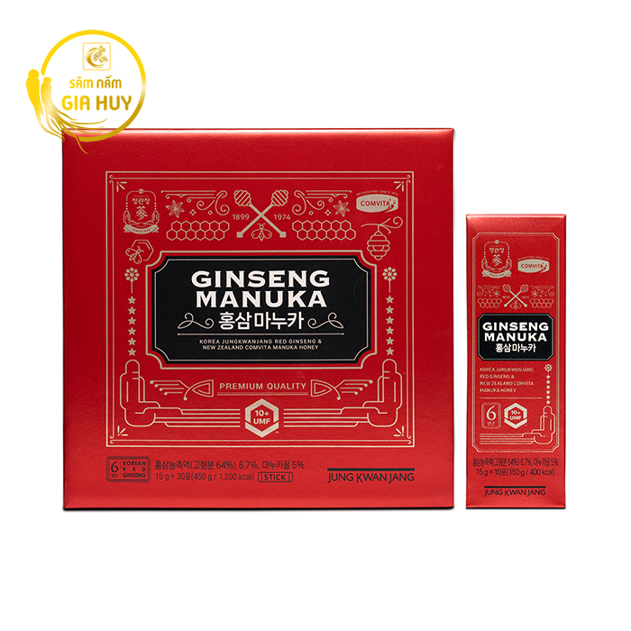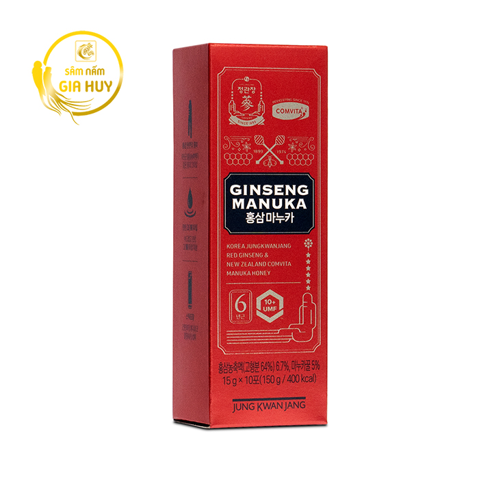 Tinh chất hồng sâm mật ong Manuka KGC Jung Kwan Jang là sản phẩm cao cấp kết hợp giữa hồng sâm cô đặc 6 năm tuổi và mật ong Manuka nguyên chất UMF 10+ từ New Zealand. Không chỉ mang đến nguồn năng lượng tự nhiên, tăng cường đề kháng, sản phẩm còn tạo nên trải nghiệm vị giác mới mẻ, thơm ngon và dễ uống – phù hợp cho cả nam lẫn nữ trong cuộc sống hiện đại.