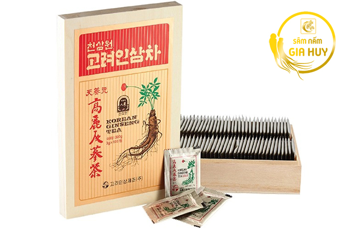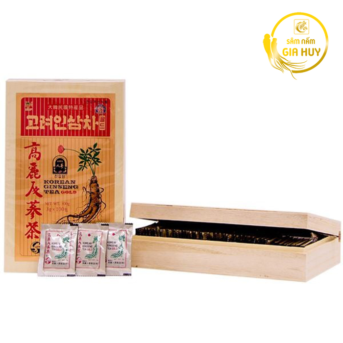 Trà hồng sâm được chiết xuất trực tiếp từ hồng sâm 6 năm tuổi chất lượng cao, đóng gói trong hộp gỗ trang nhã, vừa đảm bảo thẩm mỹ vừa tiện dụng.