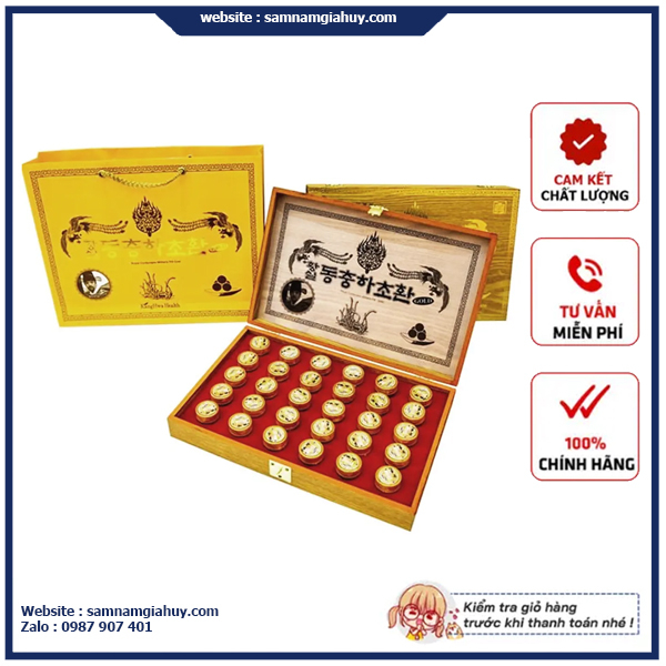 Viên Đông Trùng Hạ Thảo Kanghwa hộp gỗ vàng 30 viên